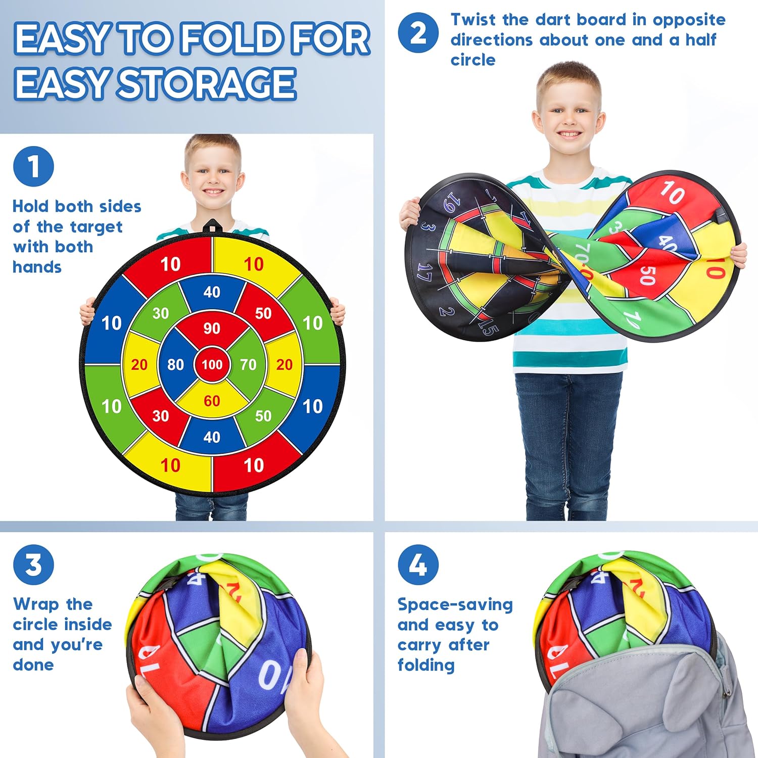 • SUPER SIZE DART BOARD: Our 29-inch double-sided dart board is a fun, safe and challenging toy for kids. Through this game, children can exercise their hand-eye coordination, precision and concentration. It provides an opportunity to interact with friends and family, adding to the fun and competitive nature of the game.
