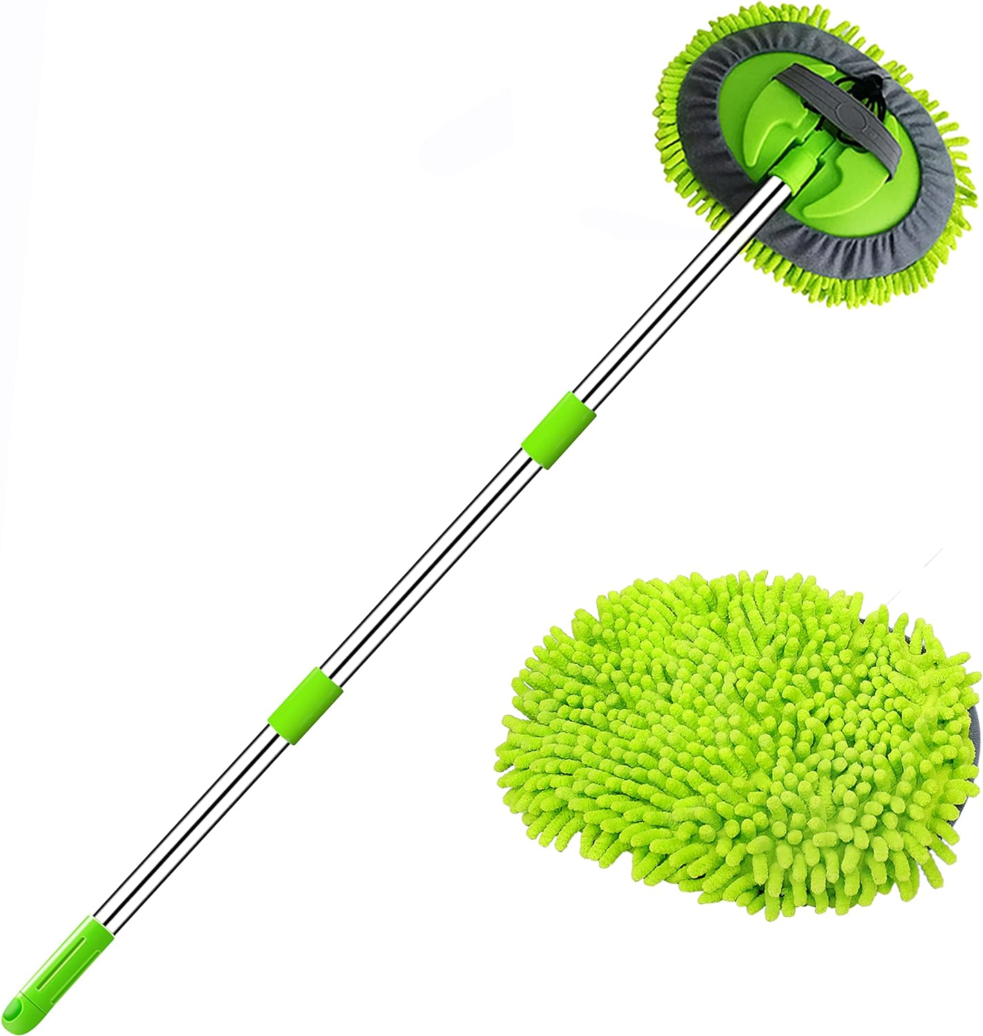 • 2-in-1 Car Wash Brush:Disassemble the microfibre car mop head and use it as a mitt to clean the interior of the car Easily. Assemble the chenille, turn it into a long mop, and clean the exterior of the car conveniently. Buying one is equal to buying two, two functions combined in one mop for best professional use